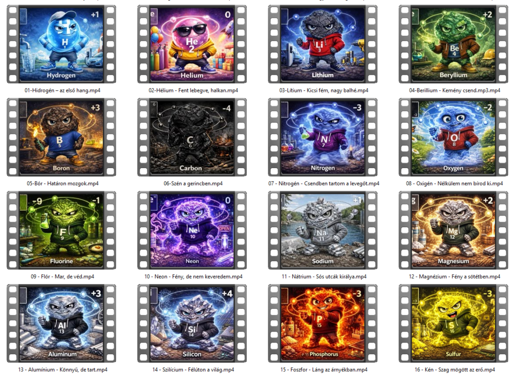 Mi a Grok videókészítőjét használtuk. Ez jelenleg (2026. év eleje) ingyenes, magas a napi limit, és a minősége is nagyon jó. Ide elegendő az elkészült képeket feltölteni, és már készülnek is az animációk (hangokkal együtt).